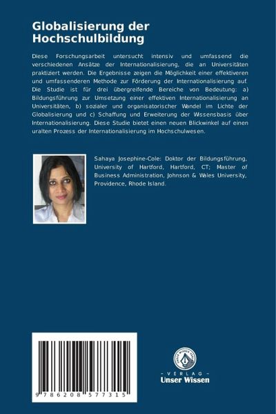 Diese Forschungsarbeit untersucht intensiv und umfassend die verschiedenen Ansätze der Internationalisierung, die an Universitäten praktiziert werden. Die Ergebnisse zeigen die Möglichkeit einer effektiveren und umfassenderen Methode zur Förderung der Internationalisierung auf. Die Studie ist für drei übergreifende Bereiche von Bedeutung: a) Bildungsführung zur Umsetzung einer effektiven Internationalisierung an Universitäten, b) sozialer und organisatorischer Wandel im Lichte der Globalisierung und c) Schaffung und Erweiterung der Wissensbasis über Internationalisierung. Diese Studie bietet einen neuen Blickwinkel auf einen uralten Prozess der Internationalisierung im Hochschulwesen.
