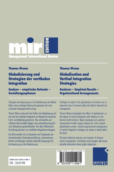 Thomas Wrona untersucht den Einfluss der Globalisierung auf den Grad der vertikalen Integration am Beispiel der deutschen Textil- und Bekleidungsindustrie. Neu entwickelte und validierte Messmodelle belegen eine unternehmensspezifische "Globalisierungsbetroffenheit" und deren individuelle Anpassungsstrategien. Das Buch differenziert Gestaltungsoptionen von vertikalen Integrationsstrategien.