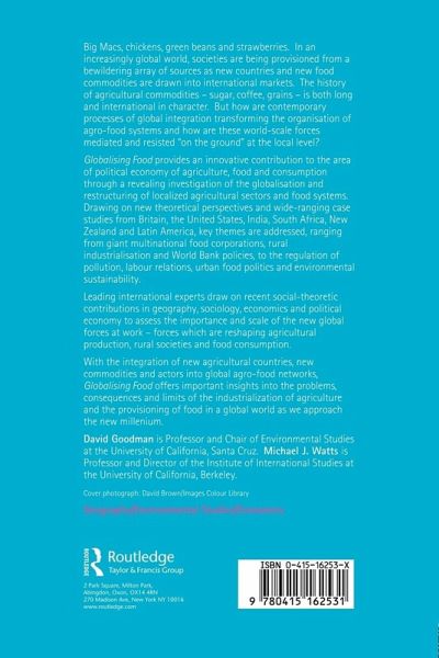 In an increasingly global world, societies are being provisioned from a bewildering array of sources as new countries and new food commodities are drawn into international markets. Globalising Food provides an innovative contribution to the area of political economy of agriculture, food and consumption through a revealing investigation of the globalisation and restructuring of localised agricultural sectors and food systems. The book draws on new theoretical perspectives and wide-ranging case studies from Britain, the USA, India, South Africa, New Zealand and Latin America. The key themes addresses range from giant multinational food corporations, rural industrialisation and World Bank policies, to the regulation of pollution, labour relations, urban food politics and environmental sustainability. Globalising Food offers important insights into the problems, consequences and limits of the industrialisation of agriculture and the provisioning of food in a global world as we approach the new millenium.