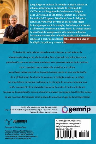 Globalización es la palabra clave de nuestro tiempo, la cual refiere a la interdependencia que nos afecta a todos. Pero a menudo nos enfrentamos a la globalización con una ambivalencia extrema, con sus consecuencias tanto positivas como negativas para la economía, la política y la cultura. Joerg Rieger señala que incluso la propia teología puede ser una manifestación de la globalización. En el peor de los casos, la teología puede ser un reflejo del imperialismo intelectual occidental, y en el mejor de los casos, fomentar una visión convincente de la diversidad dentro de la unidad. El autor articula una teología de la globalización como un fenómeno diverso que respeta las diferentes formas de ver y conocer, fomentando así el sentido de armonía en lugar de la homogeneidad. Traducido por Marisa Strizzi. Publicado por JUANUNO1 Ediciones, en acuerdo con GEMRIP www.gemrip.org