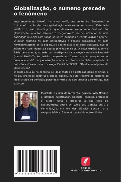 Inspirando-se no filósofo Immanuel KANT, que contrapõe "fenómeno" e "númeno", o autor decifra a globalização mais como um númeno. Este facto justifica a sua abordagem, que descreve como uma "rutura". Na globalização, o autor discerne o mega-projeto do Deus-Criador de uma sociedade mundial para todos os seres humanos à escala global e perene. O autor examina as suas perspectivas e opções axiológicas, as suas homogeneizações psico-espirituais alternativas e as suas questões, que se afastam a cem léguas da abordagem racionalista. O autor explica-o, com a Bíblia bem aberta, através do paradigma do sociólogo americano Lasswell (Harold DWIGHT). Ao fazê-lo, responde ao "quem, o quê, porquê, como, quando e onde" da globalização noumenal. Procura também responder à questão colocada pelo sociólogo Daniel MERCURE: "Qual é o objetivo da globalização?O autor apoia-se no conceito de ideal cristão de perfeição psico-espiritual e no seu processo centrífugo, que já explicou. O autor recorre ao conceito de ideal cristão de perfeição psico-espiritual e ao seu processo centrífugo, que explicou.