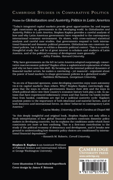 In an age of financial globalization, are markets and democracy compatible? For developing countries, the dramatic internationalization of financial markets over the last two decades deepens tensions between politics and markets. Notwithstanding the rise of left-leaning governments in regions like Latin America, macroeconomic policies often have a neoliberal appearance. When is austerity imposed externally and when is it a domestic political choice? By combining statistical tests with extensive field research across Latin America, this book examines the effect of financial globalization on economic policymaking. Kaplan argues that a country's structural composition of international borrowing and its individual technocratic understanding of past economic crises combine to produce dramatically different outcomes in national policy choices. Incorporating these factors into an electoral politics framework, the book then challenges the conventional wisdom that political business cycles are prevalent in newly democratizing regions. This book is accessible to a broad audience and scholars with an interest in the political economy of finance, development and democracy, and Latin American politics.