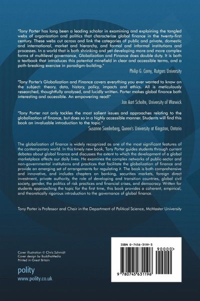 "Tony Porter's Globalization and Finance coverseverything you ever wanted to know on the subject: theory, data,history, policy, impacts and ethics. All is meticulouslyresearched, thoughtfully analyzed, and lucidly written. Portermakes global finance both interesting and accessible. An empoweringread!"Jan Aart Scholte, University of Warwick