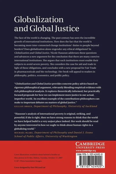 The face of the world is changing. The past century has seen the incredible growth of international institutions. How does the fact that the world is becoming more interconnected change institutions' duties to people beyond borders? Does globalization alone engender any ethical obligations? In Globalization and Global Justice, Nicole Hassoun addresses these questions and advances a new argument for the conclusion that there are significant obligations to the global poor. First, she argues that there are many coercive international institutions and that these institutions must provide the means for their subjects to avoid severe poverty. Hassoun then considers the case for aid and trade, and concludes with a new proposal for fair trade in pharmaceuticals and biotechnology. Globalization and Global Justice will appeal to readers in philosophy, politics, economics and public policy.