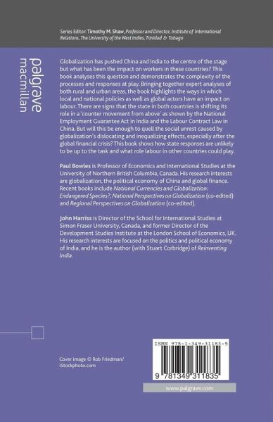 RICHARD P. APPELBAUM is Professor of Sociology and Global and International Studies at the University of California at Santa Barbara, USA MANFRED A. BIENEFELD is a Professor in the School of Public Policy and Administration at Carleton University, Canada RAJESH BHATTACHARYA is with the Centre for Popular Economics at the University of Massachusetts, Amherst, USA MARC BLECHER is Professor of Politics and East Asian Studies at Oberlin College, USA CHRIS KING-CHI CHAN is Assistant Professor at City University of Hong Kong JENNY CHAN is a doctoral candidate at the University of London, Royal Holloway, UK HONGQIN CHANG is a Ph.D candidate at the School of Management, Xi'an Jiaotong University, China FRANCESCA DEGIULI is Faculty Fellow in the Department of Global and International Studies at the University of California, Santa Barbara, USA XIAO-YUAN DONG is Professor of Economics at the University of Winnipeg, Canada, an adjunct professor of the China Centre of Economic Research (CCER), Peking University, China, and co-director of the Chinese Women economic Research and Training Program at CCER GREG FLYNN is a Lawyer and an Assistant Professor of Political Science at McMaster University, Canada BARBARA HARRISS-WHITE is Professor of Development Studies at Oxford University, UK, and Director of Oxford's new Contemporary South Asian Studies Programme and the Master's in Contemporary India ROHINI HENSMAN is an Independent Scholar and writer based in Bombay who has been active in the trade union, women's liberation and anti-war movements in India and Sri Lanka NELSON LICHTENSTEIN is Professor of History at the University of California, Santa Barbara, USA ROBERT O'BRIEN is the LIUNA-Mancinelli Professor of Global Labour Issues and Chair of the Department of Political Science at McMaster University, Canada V.K. RAMACHANDRAN is with the Social Sciences Division, Indian Statistical Institute, Kolkata, India VIKAS RAWAL is with the Centre for Economic Studies and Planning, Jawaharlal Nehru University, New Delhi, India SUPRIYA ROWCHOWDHURY is Professor, Centre for Political Institutions, Governance and Development at the Institute for Social and Economic Change in Bangalore, India KALYAN SANYAL is Professor of Economics at the University of Calcutta, India HAIYAN WANG is a Lecturer and Assistant Director of the China and Asia-Pacific Studies Program at Cornell University, USA.