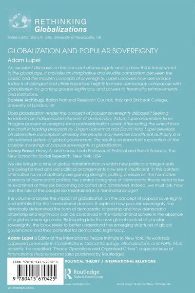 We are living in a time of global transformation in which new political arrangements are being formed and old political arrangements now seem insufficient. In this context, alternative forms of authority are gaining strength, putting pressure on the normative currency of democratic politics; the central categories of democratic theory need to be re-examined or they risk becoming co-opted and diminished. Indeed, we must ask, how can the rule of the people be maintained in a transnational age? This volume analyzes the impact of globalization on the concept of popular sovereignty and rethinks it for the transnational domain. It explores how popular sovereignty has historically determined the form of democratic citizenship and how democratic citizenship and legitimacy can be conceived in the transnational sphere in the absence of a global sovereign order. By inquiring into the new global context of popular sovereignty, the book seeks to better understand the emerging structures of global governance and their potential for democratic legitimacy. Lupel argues: That the challenges of globalization necessitate a rethinking of the concept of popular sovereignty beyond the domain of the nation-state That such a rethinking reveals a tension between the particularism of democratic legitimacy and the universalism of cosmopolitan politics Thus critical attention to the constitutive processes of global governance must become an integral part of democratic theory in the context of globalization; and a principle of transnational popular sovereignty provides the best resources for this purpose. This book will be of interest to students and scholars of globalization, democratic theory and international relations theory.