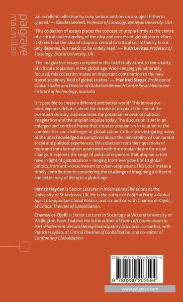 "The imaginative essays compiled in this bold study attest to the vitality of critical utopianism in the global age. Wide-ranging yet admirably focused, this collection makes an important contribution to the new transdisciplinary field of global studies." - Manfred Steger, Professor of Global Studies and Director of Globalism Research Centre Royal Melbourne Institute of Technology, Australia