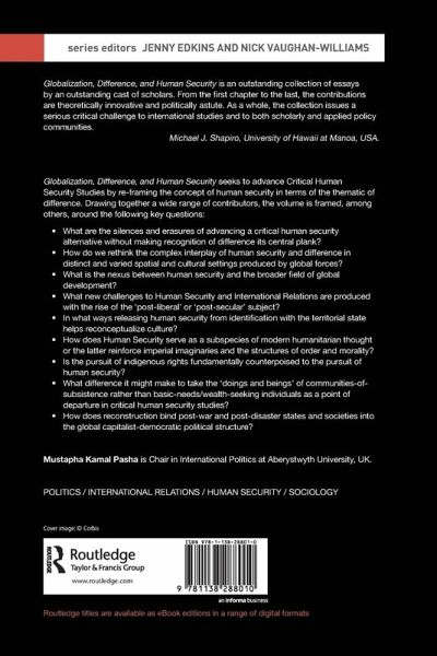 Globalization, Difference, and Human Security seeks to advance critical human security studies by re-framing the concept of human security in terms of the thematic of difference. Drawing together a wide range of contributors, the volume is framed, among others, around the following key questions: What are the silences and erasures of advancing a critical human security alternative without making recognition of difference its central plank?How do we rethink the complex interplay of human security and difference in distinct and varied spatial and cultural settings produced by global forces? What is the nexus between human security and the broader field of global development? What new challenges to Human Security and International Relations are produced with the rise of the 'post-liberal' or 'post-secular' subject? In what ways releasing human security from identification with the territorial state helps reconceptualize culture? How does Human Security serve as a subspecies of modern humanitarian thought or the latter reinforce imperial imaginaries and the structures of order and morality? Is the pursuit of indigenous rights fundamentally counterpoised to the pursuit of human security? What difference it might make to take the 'doings and beings' of communities-of-subsistence rather than basic-needs/wealth-seeking individuals as a point of departure in critical human security studies? How does reconstruction bind post-war and post-disaster states and societies into the global capitalist-democratic political structure?