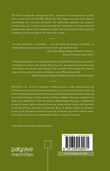 "A thoughtful and provocative analysis of the forces of globalization that both engendered the change to majority rule in South Africa but also constrained the social democratic reforms that the anti-apartheid movement had promised. Allen insightfully addresses issues of class, ethnicity, gender and nation in a post-Westphalian world." - Robert Mortimer, Professor of Political Science, Haverford College