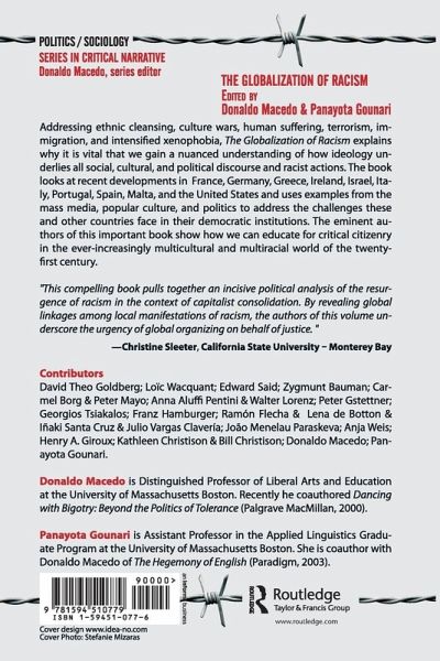 Addressing ethnic cleansing, culture wars, human sufferings, terrorism, immigration, and intensified xenophobia, "The Globalization of Racism" explains why it is vital that we gain a nuanced understanding of how ideology underlies all social, cultural, and political discourse and racist actions. The book looks at recent developments in France, Germany, Greece, Ireland, Israel, Italy, Portugal, Spain and the United States and uses examples from the mass media, popular culture, and politics to address the challenges these and other countries face in their democratic institutions. The eminent authors of this important book show how we can educate for critical citizenry in the ever-increasing multicultural and multiracial world of the twenty-first century. Contributors are: David Theo Goldberg, Loic Wacquant, Edward W. Said, Zygmunt Bauman, Peter Mayo and Carmel Borg, Anna Aluffi Pentini and Walter Lorenz, Peter Gstettner, Georgios Tsiakalos, Franz Hamburger, Julio Vargas, Lena de Botton and Ramon Flecha, Concetta Sirna, Jan Fiola, Joao Paraskeva, Henry A. Giroux. It explores new forms of racism in the era of globalization.