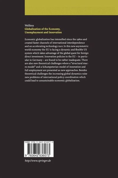 A. Economic Globalization.- 1. Globalization of the Economy and Increasing International Competition.- 2. Globalization and Rising Importance of Diffusion.- 3. Globalization, Telecommunications and Diffusion.- B. Unemployment and Innovation in Europe.- 1. EU Labor Markets Facing Globalization and Intensified Technology Competition.- 2. The Global Economy: R&D, Structural Change and Employment Shifts.- C. Labor Costs, Unemployment and Innovation.- 1. Labour Cost Pressure and Unemployment.- 2. Factors Underlying High Labor Costs.- 3. Analytical Types of Wage and Labor Cost Pressure.- 4. Wage Pressure, Productivity Growth and Innovation.- 5. Bargaining Regimes and Incentives.- 6. Firm Size, Productivity and Labor Costs.- 7. Wage Pressure, Innovation, FDI and Unemployment.- 8. Conclusions and Policy Implications for Europe.- D. Issues of Innovation Policy.- 1. R&D Policy and Reforms.- 2. Innovation and Innovation Policy.- 3. Adjusting Guidelines, Promoting Cooperation and Increasing Transparency.- 4. Environmental Problems and Growth: Some Policy Conclusions.- 5. Exploiting Communication Opportunities.- 6. New Role for the EU in Education Policies.- 7. Mobilizing Entrepreneurship in Universities.- 8. Perspectives: Globalization and Political Innovation in a Democracy.- 9. Globalization, the Information Society and Economic Catching-up in the World Economy.- List of Tables and Figures.- References.