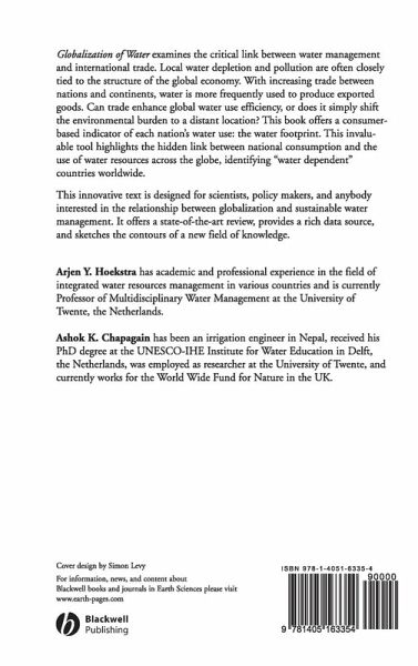 Globalization of Water examines the critical link between water management and international trade. Local water depletion and pollution are often closely tied to the structure of the global economy. With increasing trade between nations and continents, water is more frequently used to produce exported goods. Can trade enhance global water use efficiency, or does it simply shift the environmental burden to a distant location? This book offers a consumer-based indicator of each nation's water use: the water footprint. This invaluable tool highlights the hidden link between national consumption and the use of water resources across the globe, identifying "water dependent" countries worldwide. This innovative text is designed for scientists, policy makers, and anybody interested in the relationship between globalization and sustainable water management. It offers a state-of-the-art review, provides a rich data source, and sketches the contours of a new field of knowledge.