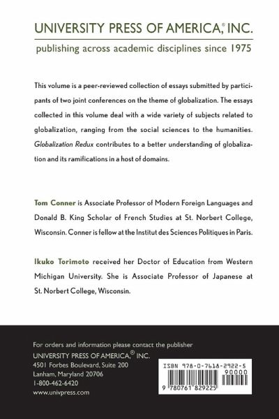 This volume is a peer-reviewed collection of essays submitted by participants of two joint conferences on the theme of globalization. The essays collected in this volume deal with a wide variety of subjects related to globalization, ranging from the social sciences to the humanities. Globalization Redux contributes to a better understanding of globalization and its ramifications in a host of domains.