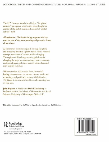 Globalization: The Reader addresses the big issues: communications and global media, political economy, cultural homogeneity and heterogeneity, new technologies, tourism, beliefs, and identity.