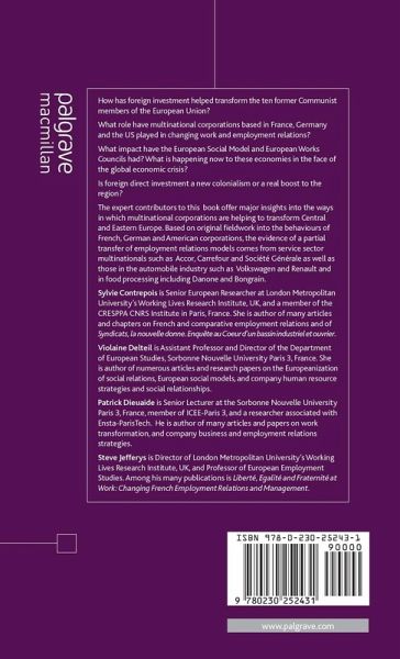INTRODUCTION Globalising Employment Relations and Crisis: the role of Multinational Company transfers to Central and Eastern Europe; S. Contrepois, V. Delteil, P. Dieuaide and S. Jefferys PART I: FDI TRANSFERS AND CENTRAL AND EASTERN EUROPE Exporting the American model of employee representation; A. Ferner MNC social transfers to CEE; G. Meardi , F. Traxler and S. Strohmer Manufacturing and services FDI trajectories: colonial perceptions and union opportunities in Central and Eastern Europe; S. Jefferys PART II: EMPLOYMENT RELATIONS IN DIFFERENT SECTORS IN CENTRAL AND EASTERN EUROPE Surviving the Global Financial Crisis; S. Contrepois, V. Delteil, P. Dieuaide and S. Jefferys MNCs, HRM and Social Dialogue in the East European Food Industry; P. Dieuaide Exporting the German work model to Central and Eastern Europe; M. Krzywdzinski PART III: MULTINATIONALS AND HOST COUNTRIES IN THE CRISIS Employment relations and the opening up to MNCs in Hungary; J. Koltay How French are French MNCs in Hungary? L. Szabo and V. Zentai MNCs and the transformation of Bulgarian employment relations'; Z. Vladimirov Polish employment relations under the challenge of French FDI; A. Kwiatkiewicz Industrial Relations and Social Dialogue in the Baltic States - Crisis, Conflict and Compromise; C. Woolfson, J. Birzins and E. Kallaste PART IV: EUROPEAN SOCIAL INTEGRATION, MNCS AND CHANGE Internationalizing Firms and Employee Representation: French Multinationals in Central and Eastern Europe; S. Contrepois Central and Eastern European employment relations models and the challenge of change? V. Delteil Is Central and Eastern Europe a Laboratory for New Forms of Employment Relations? G. Groux
