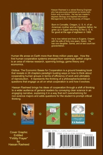 Human life arose on Earth more than three million years ago. How the first human cooperative systems emerged from seemingly selfish origins is an area of intense research, spanning biology, game theory and economics. Globus: The Economic Bases for Cooperation is a ground breaking book that reveals in 26 chapters paradigm busting ways on how to think about cooperating human groups in terms of efficiency of work and ultimately of reproduction. It represents the thinking of a leading philosopher/scientist on questions that engage us all on what cooperation is and how it evolves. Hassan Rasheed brings his ideas of cooperation through a shift of thinking to a wider audience of general readers by conveying clear science in an engaging narrative, explaining it in a way that isn't overwhelming for non-science majors and adds questions for the student to prompt critical thinking.