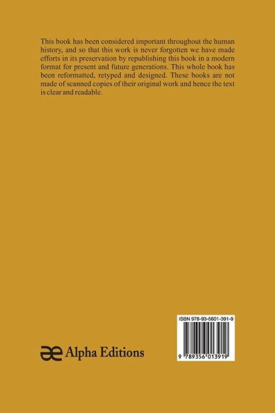 This book has been considered important throughout the human history, and so that this work is never forgotten we have made efforts in its preservation by republishing this book in a modern format for present and future generations. This whole book has been reformatted, retyped and designed. These books are not made of scanned copies and hence the text is clear and readable.