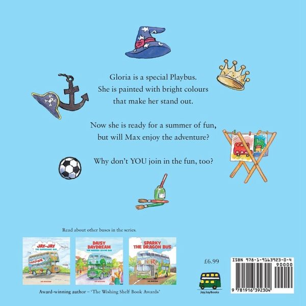 A children's picture books about a bus, a Playbus. The stories began with a photographic book about a real bus, with children asking questions it led to fictional stories. What is a Playbus? What does it do? How is it different? The photographic history book about the project, The 'Bewbush Playbus', was published in 2012. The fictional tale about the bus began with 'Jay-Jay the Supersonic Bus', Gloria is the new bus which delivered Play-scheme support over the long school holidays to children. Providing a safe place to play.