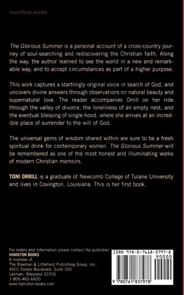 The Glorious Summer is a personal account of a cross-country journey of soul-searching and rediscovering the Christian faith. Along the way, the author learned to see the world in a new and remarkable way, and to accept circumstances as part of a higher purpose. This work captures a startlingly original voice in search of God, and uncovers divine answers through observations on natural beauty and supernatural love. The reader accompanies Orrill on her ride through the valley of divorce, the loneliness of an empty nest, and the eventual blessing of single-hood, where she arrives at an incredible place of surrender to the will of God. The universal gems of wisdom shared within are sure to be a fresh spiritual drink for contemporary women. The Glorious Summer will be remembered as one of the most honest and illuminating works of modern Christian memoirs.