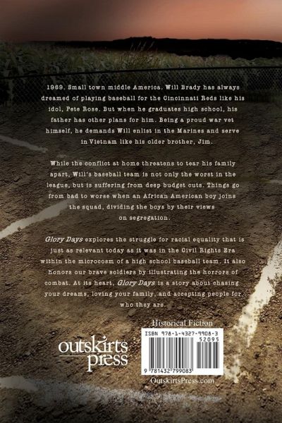 A career in baseball, or life in the Marines. 1969. Small town Middle America. Will Brady has always dreamed of playing baseball for the Cincinnati Reds like his idol, Pete Rose. But when he graduates high school, his father has other plans for him. Being a proud war vet himself, he demands Will enlist in the Marines and serve in Vietnam like his older brother, Jim. While the conflict at home threatens to tear his family apart, Will's baseball team is not only the worst in the league, but is suffering from deep budget cuts. Things go from bad to worse when an African American boy joins the squad, dividing the boys by their views on segregation. Glory Days explores the struggle for racial equality that is just as relevant today as it was in the Civil Rights Era within the microcosm of a high school baseball team. It also honor our brave soldiers by illustrating the horrors of combat. At its heart, Glory Days is a story about chasing your dreams, loving your family, and accepting people for who they are.