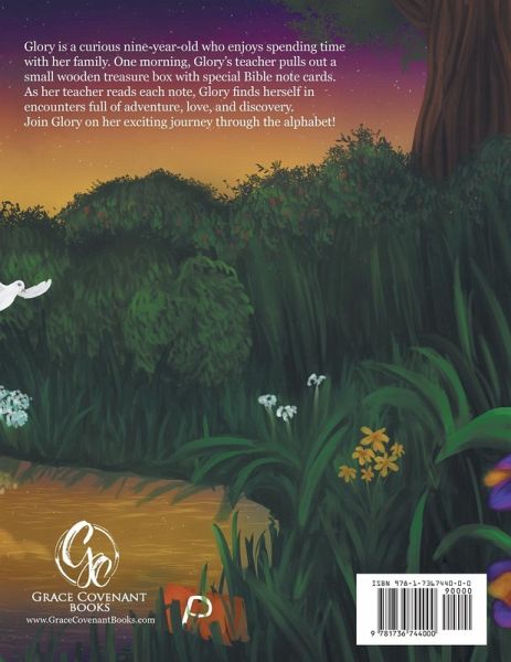 Glory is a curious nine-year-old who enjoys spending time with her family. One morning, Glory's teacher pulls out a small wooden treasure box with special bible note cards. As her teacher reads each note, Glory finds herself in encounters full of adventure, love, and discovery. Join Glory on her exciting journey through the Alphabet! This story is sure to connect children to scripture and will enable each child to know that they are valued, and loved by God.