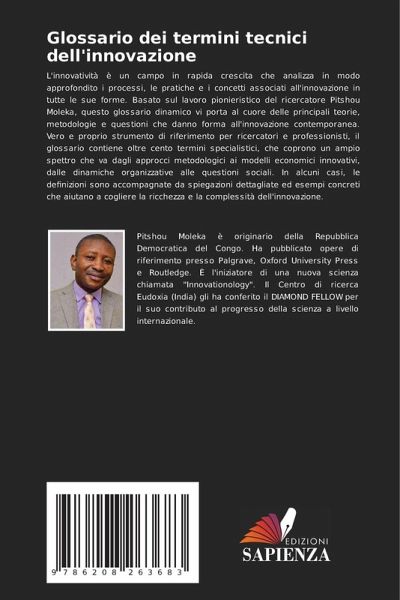 L'innovatività è un campo in rapida crescita che analizza in modo approfondito i processi, le pratiche e i concetti associati all'innovazione in tutte le sue forme. Basato sul lavoro pionieristico del ricercatore Pitshou Moleka, questo glossario dinamico vi porta al cuore delle principali teorie, metodologie e questioni che danno forma all'innovazione contemporanea. Vero e proprio strumento di riferimento per ricercatori e professionisti, il glossario contiene oltre cento termini specialistici, che coprono un ampio spettro che va dagli approcci metodologici ai modelli economici innovativi, dalle dinamiche organizzative alle questioni sociali. In alcuni casi, le definizioni sono accompagnate da spiegazioni dettagliate ed esempi concreti che aiutano a cogliere la ricchezza e la complessità dell'innovazione.