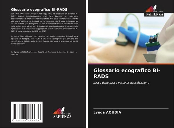 Dal 1993, l'American College of Radiology (ACR) ha pubblicato un sistema BI-RADS (Breast Imaging-Reporting and Data System) per descrivere accuratamente le anomalie mammografiche. Nel 2003, contemporaneamente alla quarta edizione del BI-RADS per la mammografia, è stato sviluppato un lessico BI-RADS per l'ecografia, al fine di standardizzare la caratterizzazione delle lesioni ecografiche, con il risultato di una classificazione il più possibile riproducibile e di una gestione appropriata. L'ultima versione americana del BI-RADS è stata pubblicata dall'ACR nel 2013.In questo libro didattico, ogni termine del lessico ecografico BI-RADS sarà spiegato in dettaglio, con l'aiuto di una ricca iconografia, per arrivare alla classificazione BI-RADS delle lesioni. Questo libro sarà di interesse per tutti i medici praticanti.