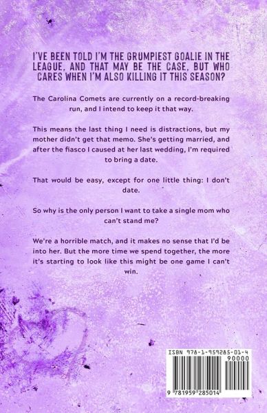 I've been told I'm the grumpiest goalie in the league, and that may be the case, but who cares when I'm also killing it this season? The Carolina Comets are currently on a record-breaking run, and I intend to keep it that way. This means the last thing I need is distractions, but my mother didn't get that memo. She's getting married, and after the fiasco I caused at her last wedding, I'm required to bring a date. That would be easy, except for one little thing: I don't date. So why is the only person I want to take a single mom who can't stand me? We're a horrible match, and it makes no sense that I'd be into her. But the more time we spend together, the more it's starting to look like this might be one game I can't win. GLOVE SAVE is a standalone hockey romcom. There's a grumpy goalie who likes to argue with a ten-year-old, a single mom, lots of fun banter, and STEAM galore!