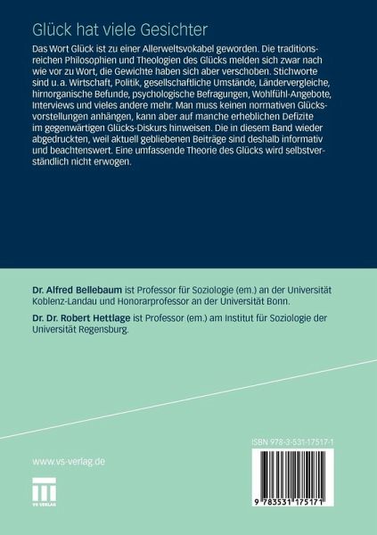 Man muss keinen normativen Glücksvorstellungen anhängen, kann aber auf manche erheblichen Defizite im gegenwärtigen Glücks-Diskurs hinweisen. Die in diesem Band wieder abgedruckten, weil aktuell gebliebenen Beiträge sind deshalb informativ und beachtenswert. Eine umfassende Theorie des Glücks wird selbstverständlich nicht erwogen.