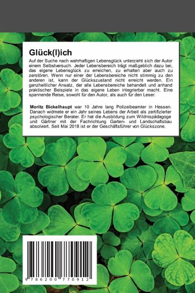 Auf der Suche nach wahrhaftigen Lebensglück unterzieht sich der Autor einem Selbstversuch. Jeder Lebensbereich trägt maßgeblich dazu bei, das eigene Lebensglück zu erreichen, zu erhalten aber auch zu zerstören. Wenn nur einer der Lebensbereiche nicht stimmig zu den anderen ist, kann der Glückszustand nicht erreicht werden. Ein ganzheitlicher Ansatz, der alle Lebensbereiche behandelt und anhand praktischer Beispiele in das eigene Leben integrierbar macht. Eine spannende Reise, sowohl für den Autor, als auch für den Leser.