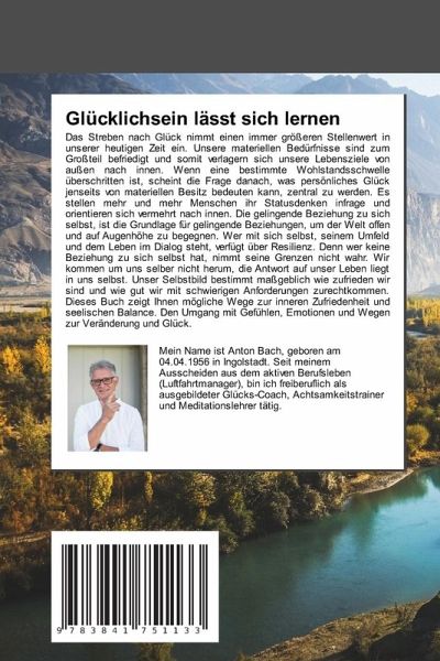 Das Streben nach Glück nimmt einen immer größeren Stellenwert in unserer heutigen Zeit ein. Unsere materiellen Bedürfnisse sind zum Großteil befriedigt und somit verlagern sich unsere Lebensziele von außen nach innen. Wenn eine bestimmte Wohlstandsschwelle überschritten ist, scheint die Frage danach, was persönliches Glück jenseits von materiellen Besitz bedeuten kann, zentral zu werden. Es stellen mehr und mehr Menschen ihr Statusdenken infrage und orientieren sich vermehrt nach innen. Die gelingende Beziehung zu sich selbst, ist die Grundlage für gelingende Beziehungen, um der Welt offen und auf Augenhöhe zu begegnen. Wer mit sich selbst, seinem Umfeld und dem Leben im Dialog steht, verfügt über Resilienz. Denn wer keine Beziehung zu sich selbst hat, nimmt seine Grenzen nicht wahr. Wir kommen um uns selber nicht herum, die Antwort auf unser Leben liegt in uns selbst. Unser Selbstbild bestimmt maßgeblich wie zufrieden wir sind und wie gut wir mit schwierigen Anforderungen zurechtkommen. Dieses Buch zeigt Ihnen mögliche Wege zur inneren Zufriedenheit und seelischen Balance. Den Umgang mit Gefühlen, Emotionen und Wegen zur Veränderung und Glück.