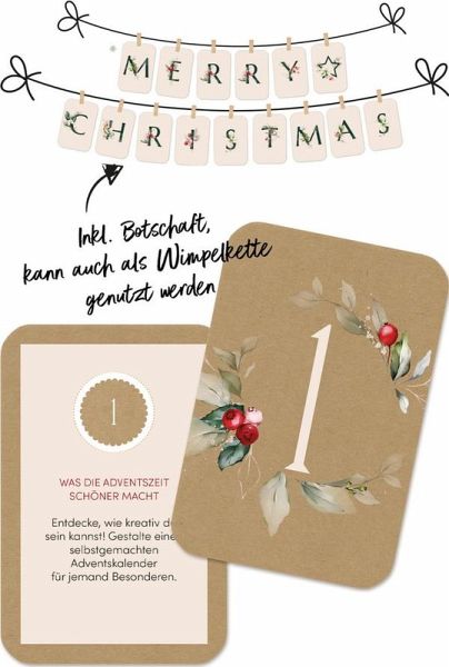 Bereite dich mit unseren zauberhaften Glückskärtchen auf das Fest der Liebe vor! Diese kleinen Karten sind perfekt, um Freude zu verschenken und die Vorfreude auf Weihnachten zu entfachen. Zeige einem besonderen Menschen, wie wichtig er dir ist, und taucht gemeinsam ein in die festliche Stimmung. Inkl. Botschaft die auch als Wimpelkette genutzt werden kann.