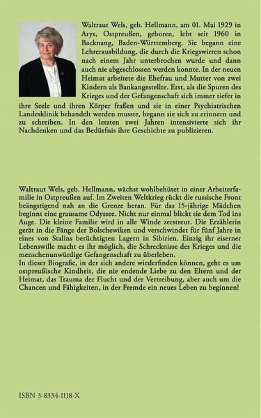 Waltraut Wels, geb. Hellmann, wächst wohlbehütet in einer Arbeiterfamilie in Ostpreußen auf. Im Zweiten Weltkrieg rückt die russische Front beängstigend nah an die Grenze heran. Für das 15-Jährige Mädchen beginnt eine grausame Odyssee. Nicht nur einmal blickt sie dem Tode ins Auge. Die kleine Familie wird in alle Winde zerstreut. Die Erzählerin gerät in die Fänge der Bolschewiken und verschwindet für fünf Jahre in eines von Stalins berüchtigten Lagern in Sibirien. Einzig ihr eiserner Lebenswille macht es ihr möglich, die Schrecknisse des Krieges und die menschenunwürdigen Gefangenschaft zu überleben. In dieser Biografie, in der sich andere wiederfinden können, geht es um ostpreußische Kindheit, die nie endende Liebe zu den Eltern und der Heimat, das Trauma der Flucht und der Vertreibung, aber auch um die Chancen und Fähigkeiten, in der Fremde ein neues Leben beginnen!