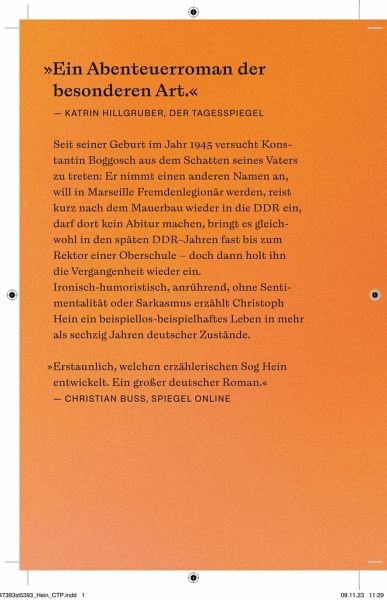 Ironisch-humoristisch, anrührend, ohne Sentimentalität oder Sarkasmus erzählt Christoph Hein ein beispiellos-beispielhaftes Leben in mehr als sechzig Jahren deutscher Zustände.