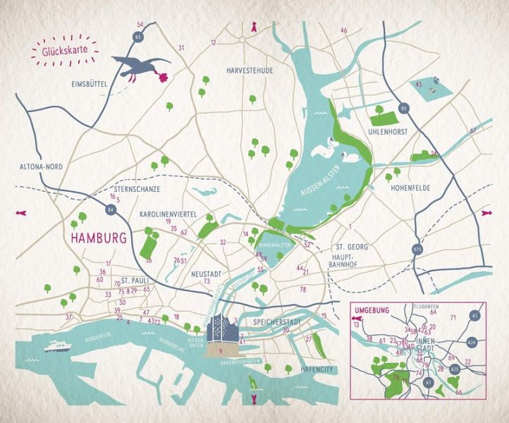 Italienisches Flair an der Elbe, eine Kutschfahrt über das Wattenmeer, ein Wochenmarkt am späten Abend oder ein Kiosk voller Kunst: Glücksorte warten in Hamburg an jeder Ecke darauf, gefunden zu werden.Die "Glücksorte in Hamburg" sind der perfekte Begleiter aller Glückssuchenden. Cornelius Hartz hat gleich 80 Orte in der Hansestadt aufgespürt - einige bekannt und traditionsreich, viele versteckt und überraschend -, die eines gemeinsam haben: Du fährst hin und wirst glücklich!