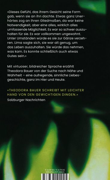 Theodora Bauer erzählt eine hinreißende, rätselhafte Liebesgeschichte inmitten der sommerschönen wie unheimlichen voralpinen Landschaft - und von der Suche nach Nähe und Wahrheit im krisenhaften Heute. Eine außergewöhnliche junge Stimme.