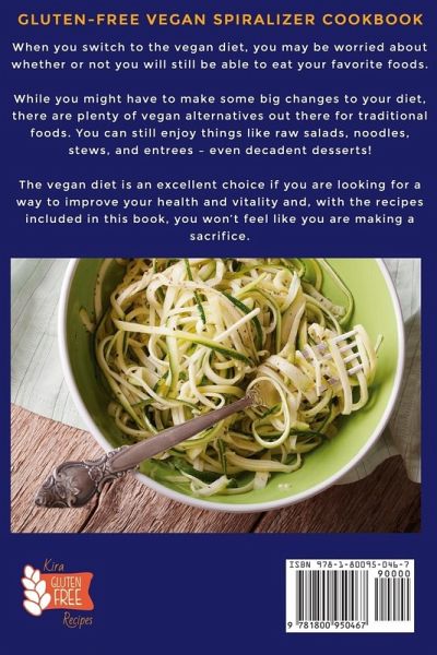 Healthy, Vegan and Gluten-Free Lifestyle Made Easy, Exciting and Fun! Your body needs REAL foods that are packed with nutrition in order for you to enjoy health while following a strict vegan, plant-based / animal-free diet. High-calorific foods that are more than unhealthy and contain shocking levels of processed sugars, saturated fats and other chemicals can only result on a progressive health degeneration and weight gain. All of these foods will indeed makes us fat, and even sick! Luckily, there are many fantastic and tasty vegan / vegetarian recipes that are packed with nutrients which are naturally dairy-free, gluten-free & guilt-free. These low-carb recipes will keep you full and satisfied so that you can feel relaxed and confident that you are moving closer both to your health goals and your animal-free eating lifestyle! You can finally start your transition and eat a low-carb, wheat-free & plant-based diet, the solution is just in front of you! With your new Vegan & Gluten-Free Spiralizer Recipe Collection you will be able to ditch processed unhealthy carbs once and for all without feeling deprived. It's just perfect for any healthy, quick, and painless weight loss plans! Discover how much variety you can ENJOY on a healthy diet rich in fresh fruits and veggies - the Spiralizer Cookbook will help you eat gluten-free + vegan + low carb + Macrobiotic while keeping your taste buds satisfied! (These recipes are also helpful to reduce celiac sprue disease / gluten intolerance symptoms) Here Is A Quick Peak Of What Vegan Recipes You'll Discover Inside: You are just about to discover how to use it to create a myriad of healthy and delicious, family-friendly recipes (100% gluten-free) that include: Thai Noodles with Tofu Creamy Tofu with Sweet Potato Noodles and Cashew Nuts Raw Zucchini, Spinach, Tomato and Black Olive Salad with Homemade Balsamic Dressing Buckwheat and Beetroot Salad with Chia Seeds and Mustard Leaves Spiralized Carrot Salad with Quinoa, Tofu and Onion Relish Spiralized Pear, Grape and Chocolaty Almond Dessert Spiralized Mango, Coconut and Brazil nut Dessert, with dried Apricots +many many more! Start feeding your body with healthy, nutrient-rich meals that are simply delicious and easy to prepare! You don't need to slave away in the kitchen for hours to give yourself the nutrition you deserve! Learn how to simplify your pursuit of health and start a vegan lifestyle with amazing spiralizer recipes!