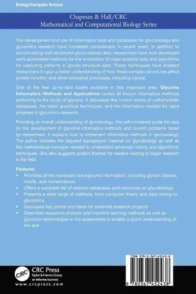 Providing an overall understanding of glycobiology, this self-contained guide focuses on the development of glycome informatics methods and current problems faced by researchers. It explains how to implement informatics methods in glycobiology. The author includes the required background material on glycobiology as well as the mathematical concepts needed to understand advanced mining and algorithmic techniques. She also suggests project themes for readers looking to begin research in the field.