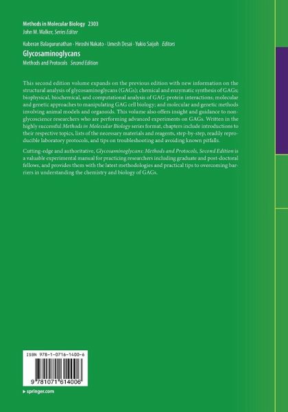 Cutting-edge and authoritative, Glycosaminoglycans: Methods and Protocols, Second Edition is a valuable experimental manual for practicing researchersincluding graduate and post-doctoral fellows, and provides them with the latest methodologies and practical tips to overcoming barriers in understanding the chemistry and biology of GAGs.
