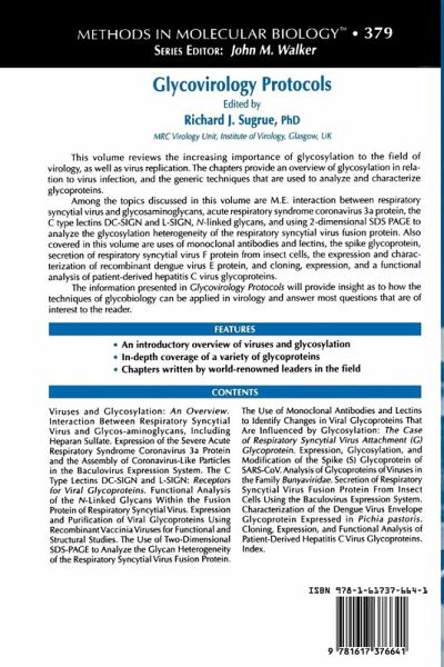 Glycovirology Protocols reviews the increasing importance of glycosylation to the field of virology, as well as virus replication. The chapters provide an overview of glycosylation in relation to virus infection, and the generic techniques that are used to analyze and characterize glycoproteins.