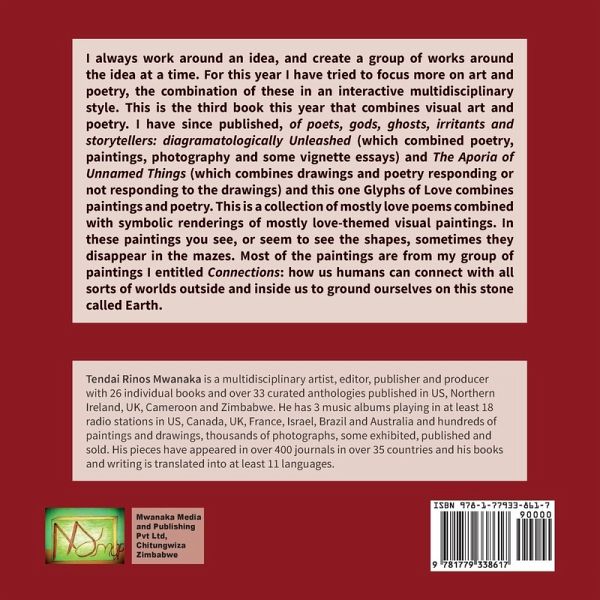 I always work around an idea, and create a group of works around the idea at a time. For this year I have tried to focus more on art and poetry, the combination of these in an interactive multidisciplinary style. This is the third book this year that combines visual art and poetry. I have since published, of poets, gods, ghosts, irritants and storytellers: diagramatologically Unleashed (which combined poetry, paintings, photography and some vignette essays) and The Aporia of Unnamed Things (which combines drawings and poetry responding or not responding to the drawings) and this one Glyphs of Love combines paintings and poetry. This is a collection of mostly love poems combined with symbolic renderings of mostly love- themed visual paintings. In these paintings you see, or seem to see the shapes, sometimes they disappear in the mazes. Most of the paintings are from my group of paintings I entitled Connections: how us humans can connect with all sorts of worlds outside and inside us to ground ourselves on this stone called Earth.
