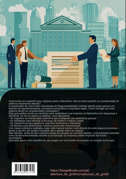 Este guia prático oferece uma orientação detalhada sobre a constituição e gestão de uma GmbH alemã (sociedade de responsabilidade limitada alemã), apresentando informações essenciais para empreendedores interessados em fundação na Alemanha.A obra aborda de forma estruturada os seguintes tópicos principais:- Fundamentos jurídicos da GmbH, incluindo legislação societária, regulamentos de responsabilidade e estrutura organizacional- Processo completo de constituição, desde a preparação do contrato social até o registro comercial e estabelecimento operacional- Aspectos internacionais da fundação de GmbH, com comparações entre formas jurídicas de diferentes países e requisitos específicos para fundadores estrangeiros- Gestão financeira, abrangendo administração de capital, contabilidade e planejamento tributário- Gestão estratégica empresarial, incluindo deveres da administração e relações entre sócios- Operações cotidianas, como organização administrativa, gestão de pessoal e gerenciamento de contratosO conteúdo é apresentado de forma clara e prática, com gráficos ilustrativos e exemplos concretos que facilitam a compreensão dos conceitos. O manual fornece orientações objetivas sobre:- Requisitos legais para constituição- Procedimentos de registro- Estruturação do capital social- Aspectos fiscais e contábeis- Gestão administrativa e operacionalUma ferramenta útil para empreendedores, consultores e profissionais interessados em estabelecer e gerir uma sociedade de responsabilidade limitada alemã.Este livro foi criado com o uso de tecnologias inovadoras, como Inteligência Artificial e ferramentas especialmente desenvolvidas - por exemplo, na geração de ideias, pesquisa, escrita, edição, garantia de qualidade e design de ilustrações decorativas.Desta forma, queremos oferecer-lhe uma experiência de leitura particularmente coerente, moderna e de ainda maior qualidade.