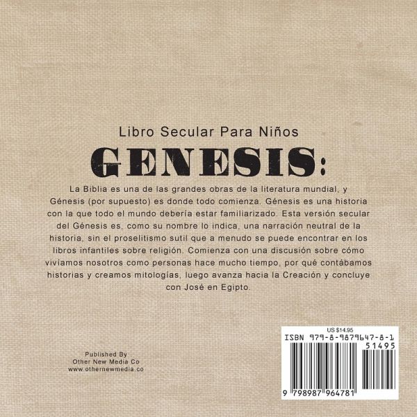 La Biblia es una de las grandes obras de la literatura mundial, y Génesis (por supuesto) es donde todo comienza. Génesis es una historia con la que todo el mundo debería estar familiarizado. Esta versión secular del Génesis es, como su nombre lo indica, una narración neutral de la historia, sin el proselitismo sutil que a menudo se puede encontrar en los libros infantiles sobre religión. La historia secular del Génesis comienza con una discusión de cómo vivimos nosotros como personas hace mucho tiempo, por qué contábamos historias y creamos mitologías, luego avanza a los siete días de la Creación, Adán y Eva, Abraham, Isaac, Jacob y concluye con José en Egipto. El libro no es de ninguna manera un recuento completo del Génesis, sino más bien una introducción rápida destinada a familiarizar a los niños con la historia. Apropiado para niños de entre 4 y 8 años