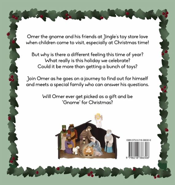 It's the Christmas season in Jingle's Toy Store, but Omer the toy Gnome can't understand what makes this time of year so different from the others. Why are people rushing about, buying more gifts than usual, and feeling excited? Are presents and Santa really what this holiday is all about? Join Omer as he goes on a journey through the toy store to find the TRUE meaning of Christmas (and meets a very special family along the way!)