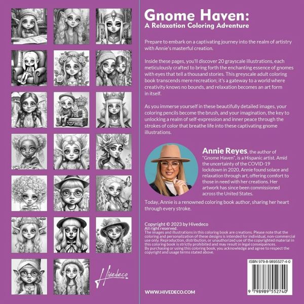 Prepare to embark on a captivating journey into the realm of artistry with Annie's masterful creation. Inside these pages, you'll discover 20 grayscale illustrations, each meticulously crafted to bring forth the enchanting essence of gnomes with eyes that tell a thousand stories. This greyscale adult coloring book transcends mere recreation; it's a gateway to a world where creativity knows no bounds, and relaxation becomes an art form in itself. As you immerse yourself in these beautifully detailed images, your coloring pencils become the brush, and your imagination, the key to unlocking a realm of self-expression and inner peace through the strokes of color that breathe life into these captivating gnome illustrations.