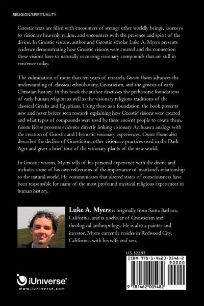 Gnostic texts are filled with encounters of strange other worldly beings, journeys to visionary heavenly realms, and encounters with the presence and spirit of the divine. In Gnostic visions, author and Gnostic scholar Luke A. Myers presents evidence demonstrating how Gnostic visions were created and the connection these visions have to naturally occurring visionary compounds that are still in existence today. The culmination of more than ten years of research, Gnostic Visions advances the understanding of classical ethnobotany, Gnosticism, and the genesis of early Christian history. In this book the author discusses the prehistoric foundations of early human religion as well as the visionary religious traditions of the classical Greeks and Egyptians. Using these as a foundation, the book presents new and never before seen research explaining how Gnostic visions were created and what types of compounds were used by these ancient people to create them. Gnostic Visions presents evidence directly linking visionary Ayahuasca analogs with the creation of Gnostic and Hermetic visionary experiences. Gnostic Visions also describes the decline of Gnosticism, other visionary practices used in the Dark Ages and gives a brief tour of the visionary plants of the new world. In Gnostic visions, Myers tells of his personal experience with the divine and includes some of his own reflections of the importance of mankind's relationship to the natural world. He communicates that altered states of consciousness have been responsible for many of the most profound mystical religious experiences in human history.