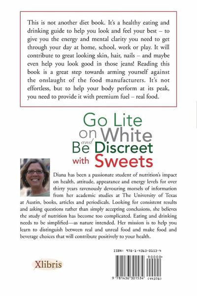 This is not another "diet" book. It is a healthy eating and drinking guide. This is the book you've been looking for that will tell you what you should and should not eat - and why - without going in to a lot of scientific jargon. Carbs are not the enemy. Neither are fats or proteins. Good nutrition is more than counting calories, carbs, fats and proteins. Good nutrition is getting the nutrients your body needs for good health, abundant energy and healthy weight control. This book defines food for you. Food Food is grown. Food is raised. Food grows in nature - in the wild. Food rots. Food has life sustaining nutrients which are imparted to you when you eat it. Food provides vitamins, minerals, enzymes, micronutrients, macronutrients, phytonutrients, antioxidants and fiber. Food is not made. Food is not manufactured. This book will tell you what is and is not food. It will show you how to look for chemical additives and hidden sweets. It will show you marketing tricks used by manufacturers to make you think you're getting healthy, real food. It will help you arm yourself against the onslaught of ads and false claims. Nature did not complicate food People are so confused about what they should or should not eat. It's not your fault! Nature did not complicate food for us. Humans have complicated our eating and drinking by manufacturing non-foods and marketing them in mammoth campaigns as food. The past two generations have grown up with grocery stores filled with boxes and bags of manufactured or over processed "food" devoid of natural nutrients. Most of what is passed off to us in grocery stores and advertised in print or TV commercials has relatively few natural nutrients and bears little resemblance to what nature provided for us to nourish our bodies. It may have once been a natural, living food, but in its current form exhibits few original characteristics. Young Americans are craving information about healthy eating the way your body craves nutrient-providing food after being left unfulfilled from all the refined "food" you give it. High school newspapers run series of articles on the various diets and diet plans student's friends and teachers follow. They are ravenous for advice and will take it from any and every source - creating even more desperation as the conflicting information causes further confusion. Never before has timing been so critical! I can't just sit back and read another article in the daily paper - such as "Young People seek ways to lose weight; improve their lives" or "Obesity will cut U. S. Life Expectancy" - without doing all I can to help. Go to the book stores. There are entire sections on diet and nutrition books. Some are written by doctors - even doctors of psychology. Some are written by actors, entertainers and other individuals who want to share their own success stories. Some are written by prestigious university nutrition departments - usually sponsored by food or drug companies. They all tell a different story, but don't emphasize the importance of eating whole, natural "real", food rather than counting calories, carbs, fat or protein. With this book, there is no need for carrying around a food diary or pocket carb counter.