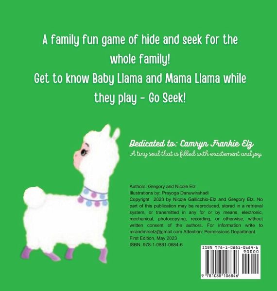 Go Seek! is about a Baby Llama and a Mama Llama playing hide and go seek. Baby Llama gets help from his farm friends to find Mama Llama. A colorful animal picture book for infants, toddlers, and first time readers. Family fun reading for all.