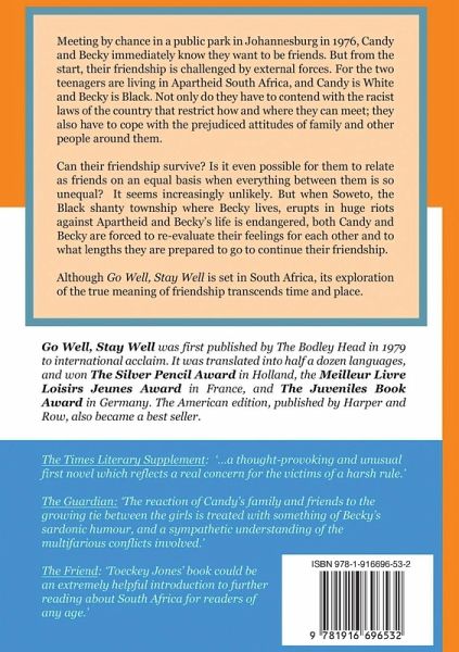 'A thought-provoking and unusual first novel which reflects a real concern for the victims of a harsh rule.'- The Times Literary Supplement - 'The reaction of Candy's family and friends to the growing tie between the girls is treated with something of Becky's sardonic humour, and a sympathetic understanding of the multifarious conflicts involved.'- The Guardian - 'Toeckey Jones' book could be an extremely helpfulintroduction to further reading about South Africafor readers of any age.'- The Friend - Meeting by chance in a public park in Johannesburg in 1976, Candy and Becky immediately know they want to be friends. But from the start, their friendship is challenged by external forces. For the two teenagers are living in Apartheid South Africa, and Candy is White and Becky is Black. Not only do they have to contend with the racist laws of the country that restrict how and where they can meet; they also have to cope with the prejudiced attitudes of family and other people around them. Can their friendship survive? Is it even possible for them to relate as friends on an equal basis when everything between them is so unequal? It seems increasingly unlikely. But when Soweto, the Black shanty township where Becky lives, erupts in huge riots against Apartheid and Becky's life is endangered, both Candy and Becky are forced to re-evaluate their feelings for each other and to what lengths they are prepared to go to continue their friendship. Although 'Go Well, Stay Well' is set in South Africa, its exploration of the true meaning of friendship transcends time and place. 'Go Well, Stay Well' was first published by The Bodley Head in 1979 to international acclaim. It was translated into half a dozen languages, and won The Silver Pencil Award in Holland, the Meilleur Livre Loisirs Jeunes Award in France, and The Juveniles Book Award in Germany. The American edition, published by Harper and Row, also became a bestseller. This is a new edition.