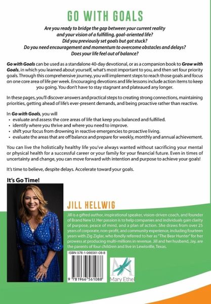Are you ready to bridge the gap between your current reality and your vision of a fulfilling, goal-oriented life? Did you previously set goals but got stuck? Do you need encouragement and momentum to overcome obstacles and delays? Does your life feel out of balance? Go with Goals can be used as a standalone 40-day devotional, or as a companion book to Grow with Goals, in which you learned about yourself, what's most important to you, and then set four priority goals. Through this comprehensive journey, you will implement steps to reach those goals and focus on one core area of life per week. Encouraging devotions and life lessons include action items to keep you going. You don't have to stay stagnant and plateaued any longer. In these pages, you'll discover answers and practical steps to creating strong connections, maintaining priorities, getting ahead of life's ever-present demands, and being proactive rather than reactive. In Go with Goals, you will evaluate and assess the core areas of life that keep you balanced and fulfilled; identify where you thrive and where you need to improve shift your focus from drowning in reactive emergencies to proactive living; evaluate the areas that are off balance and prepare for weekly, monthly and annual achievement. You can live the holistically healthy life you've always wanted without sacrificing your mental or physical health for a successful career or your family for your financial future. Even in times of uncertainty and change, you can move forward with intention and purpose to achieve your goals! It's time to believe, despite delays. Accelerate toward your goals. It's Go Time!